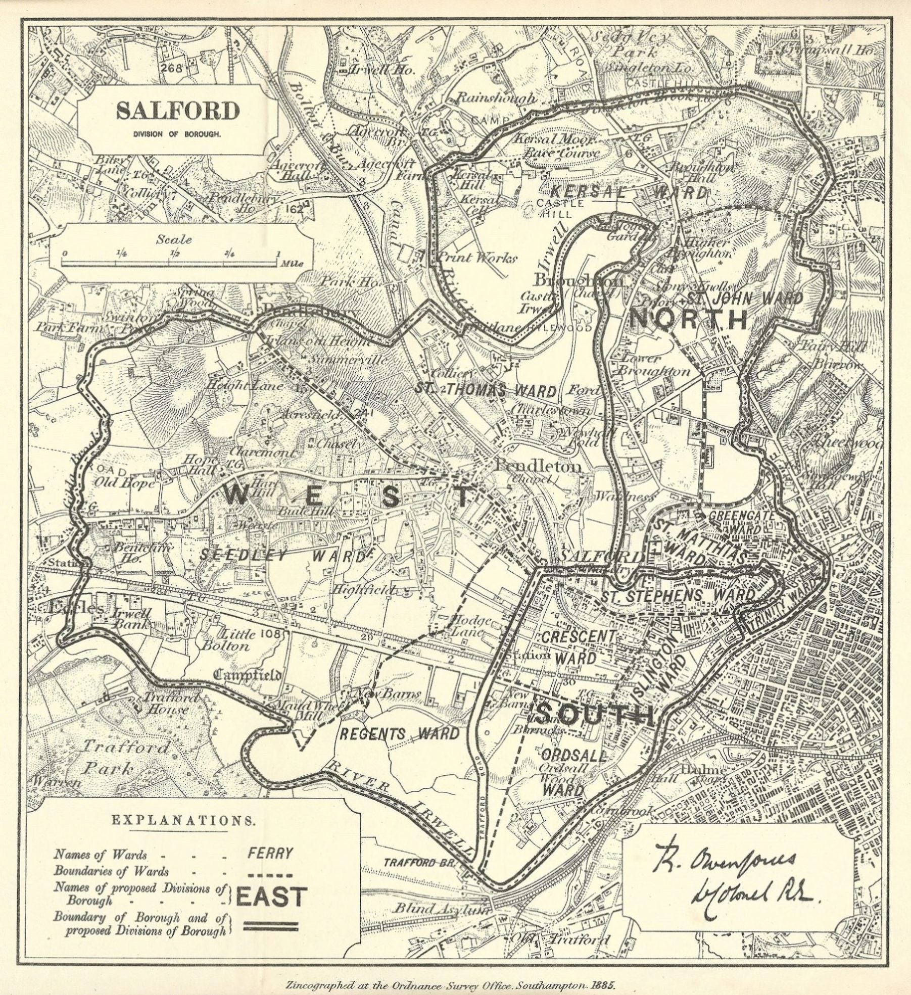 Salford Lancashire antique map Boundary Commission 1885 โ Maps and