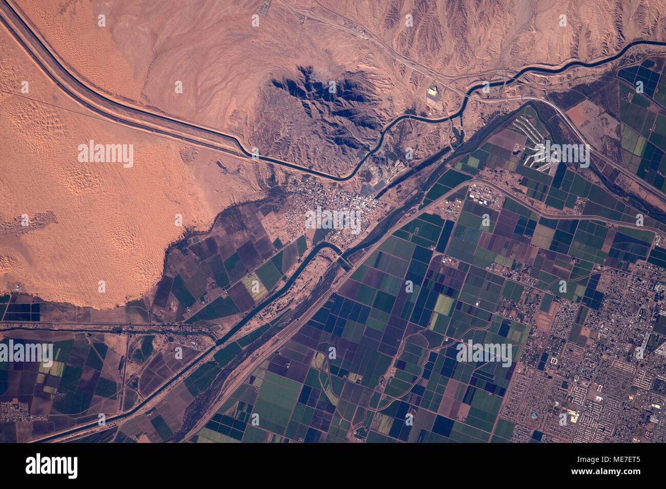A satellite view of the desert and the Colorado River near Yuma
