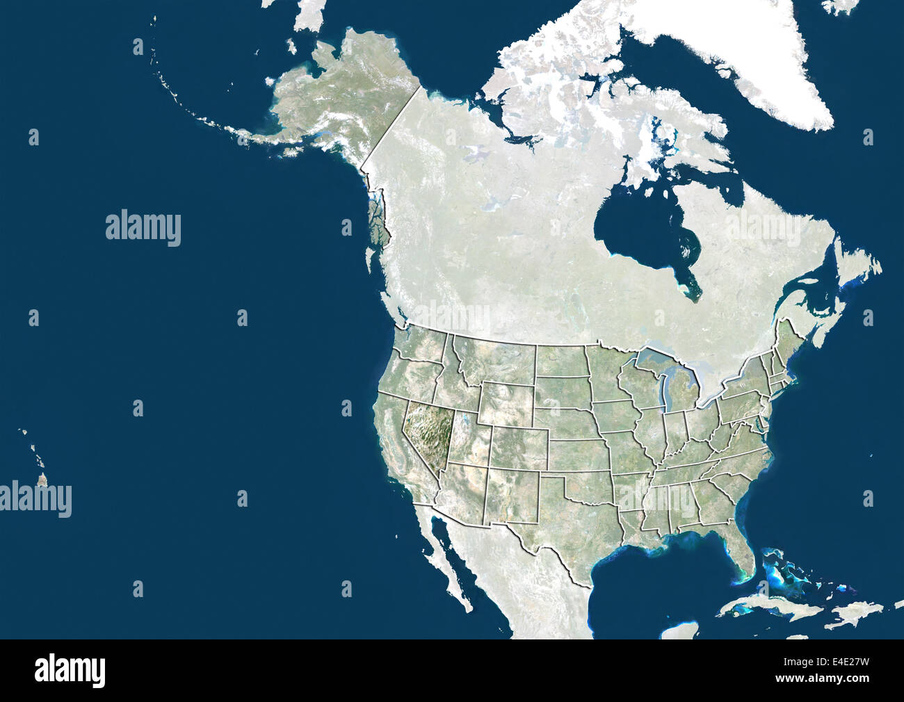 A Satellite Map Of USA And Neighboring Countries With The Main